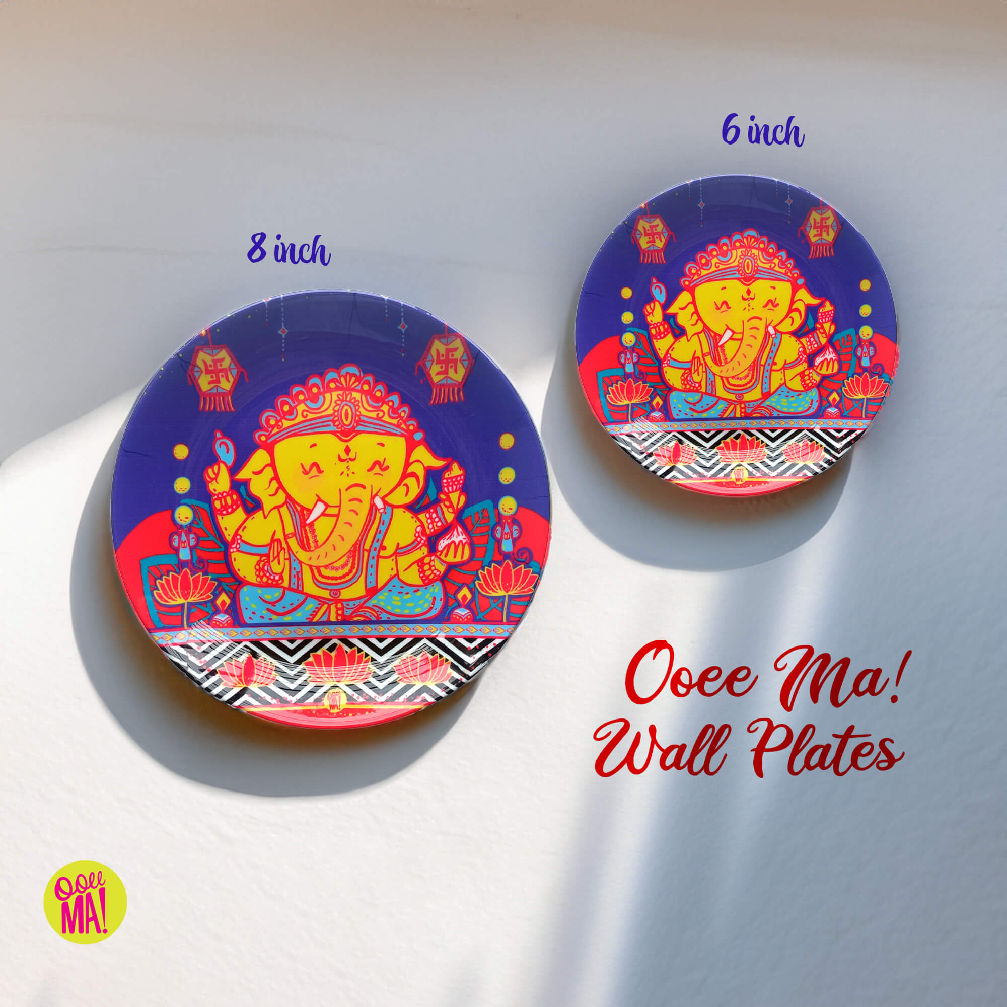Blessing Ceramic Decorative wall plates set of 3 contains cutest illustrations of Lord Ganesha, Goddess Laxmi & Goddess Saraswati! The wall plates comes with a hook behind to hang on the wall as well as a plate stand. Our Decorative plates are also unique accent piece for your living room, puja room, WFH décor. Each design is original art by Artist Ooee Ma!